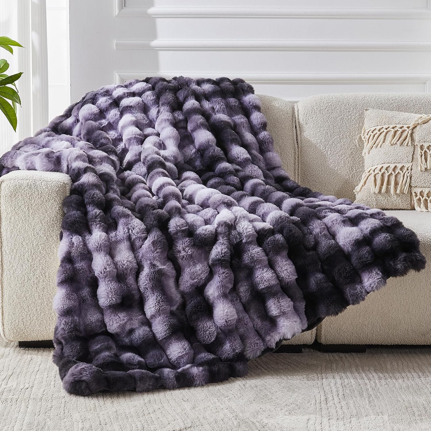 - 1. Supreme Softness & Warmth** Experience unmatched comfort with our **750GSM fluffy faux rabbit fur exterior** and **250GSM silky micromink fleece interior**. This ultra-soft throw blanket provides cozy warmth without overheating, making it perfect for chilly nights or relaxing year-round.