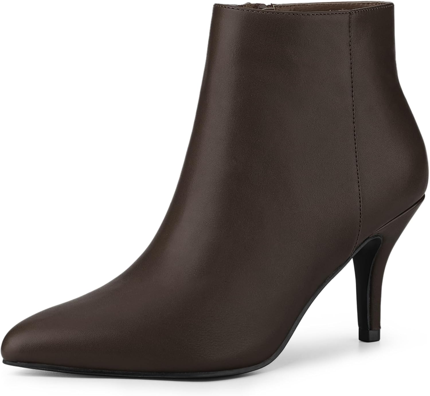 Allegra K Women's Pointed Toe Zipper Stiletto Heel Coffee Ankle Boots 8 M US