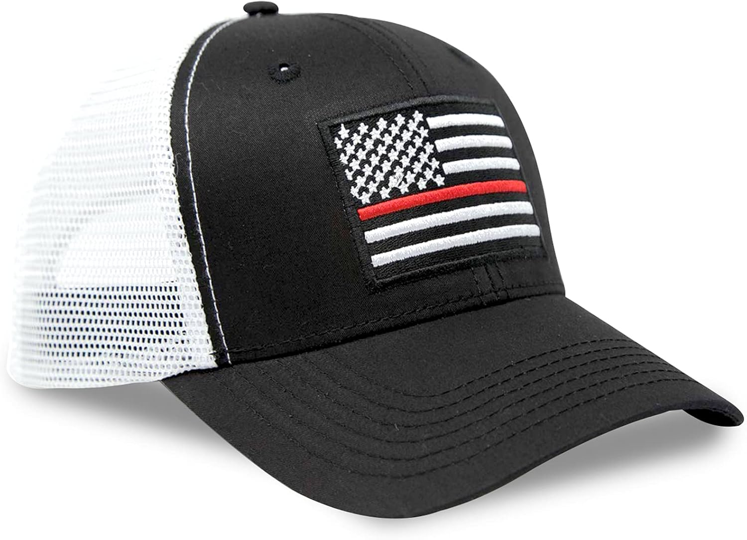 International Tie Thin Red Line Hat, USA Snapback Trucker Baseball Cap for Men & Women with Embroidered American Flag Patch