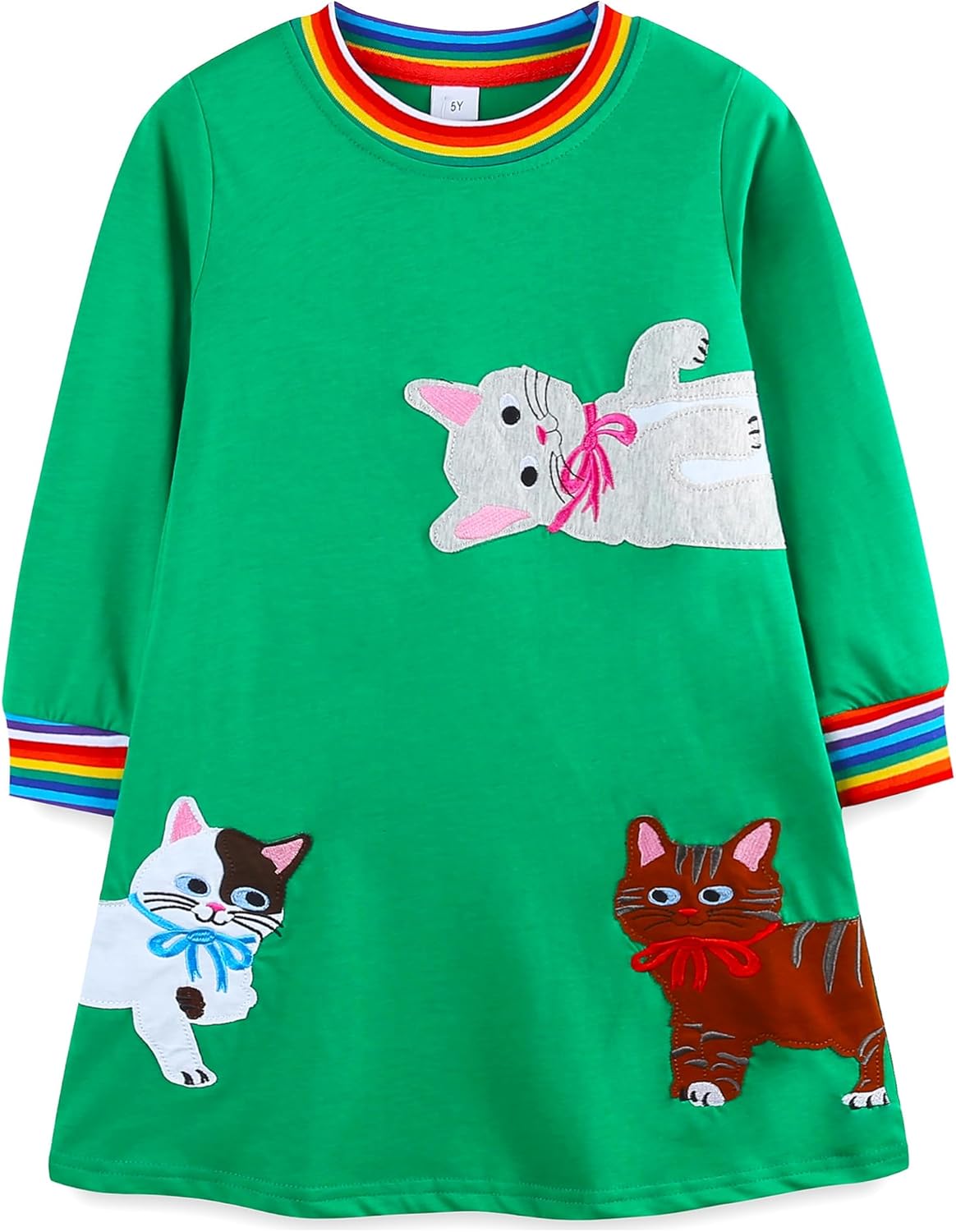 Bumeex Girl's Long Sleeve Dresses Cotton Christmas Cute Embroidery Applique Swing A-Line Casual Tunic Playwear 2-13 Years
