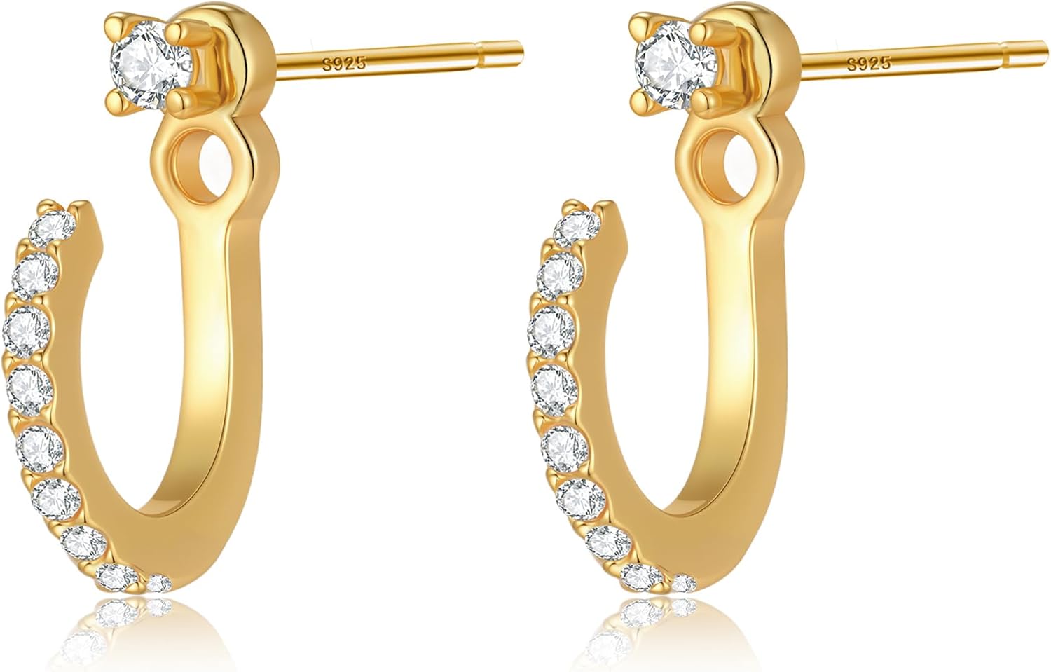 Small Cubic Zirconia Ear Jacket Earrings for Women 925 Sterling Silver Post 14K Gold Plated 2mm CZ Tiny Stud Earrings with Half Hoop