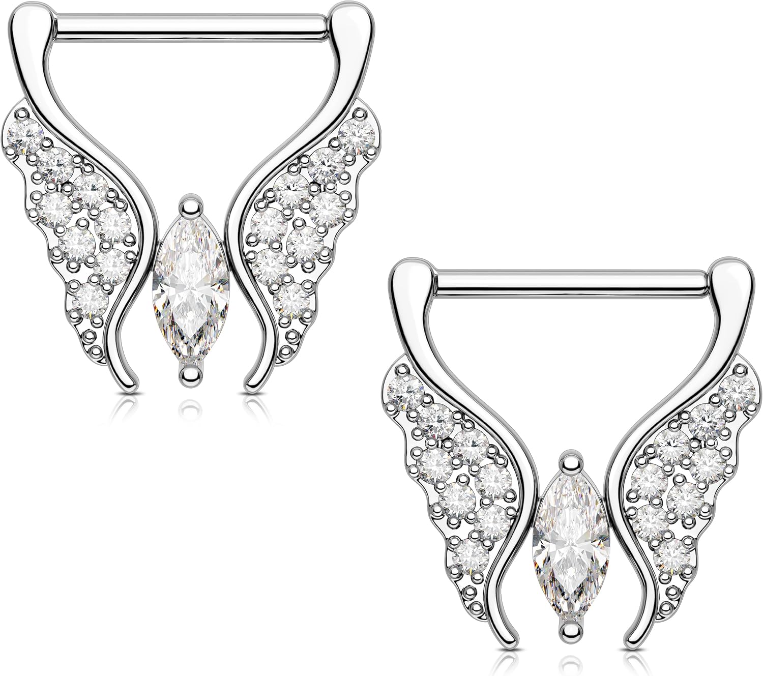 Melighting Butterfly Nipple Rings 14G Nipple Piercing 316L Stainless Steel Nipple Clicker Nipple Jewelry Clear CZ Nipple Piercing Jewelry For Women 14 mm
