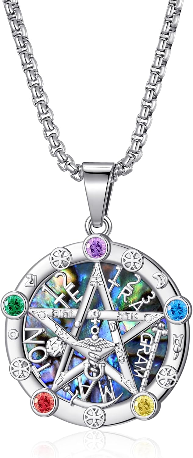 Tetragrammaton Necklace Pentagram Pentacle Chakra Necklace Tetragrammaton Amulet Witch Jewelry Gifts for Women Men 22+2‘’