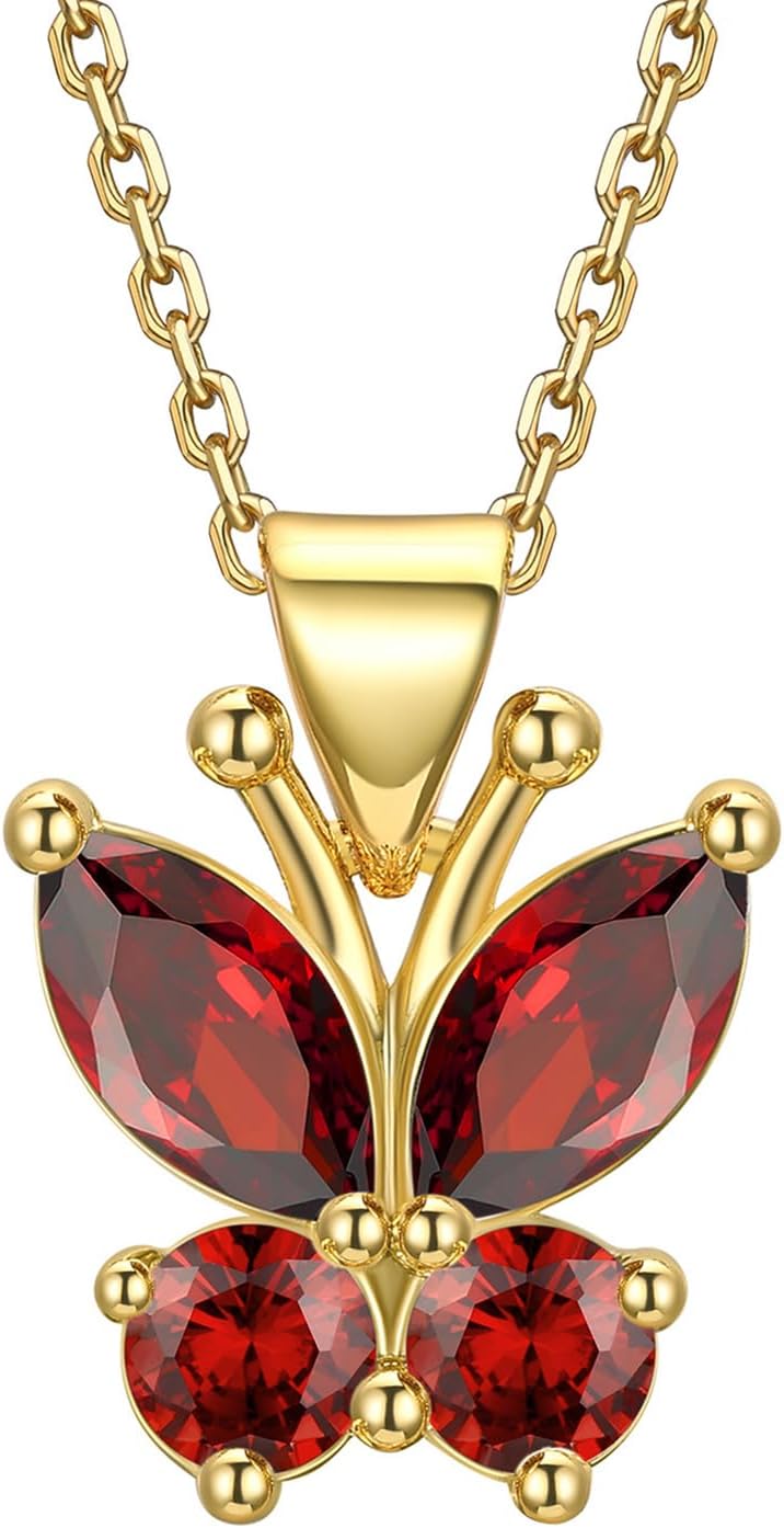 Bestyle Cute Butterfly Birthstone Necklace for Women, Dazzling Cute Silver/Gold Necklace Choker Chain, Great Birthstone Jewelry for Her