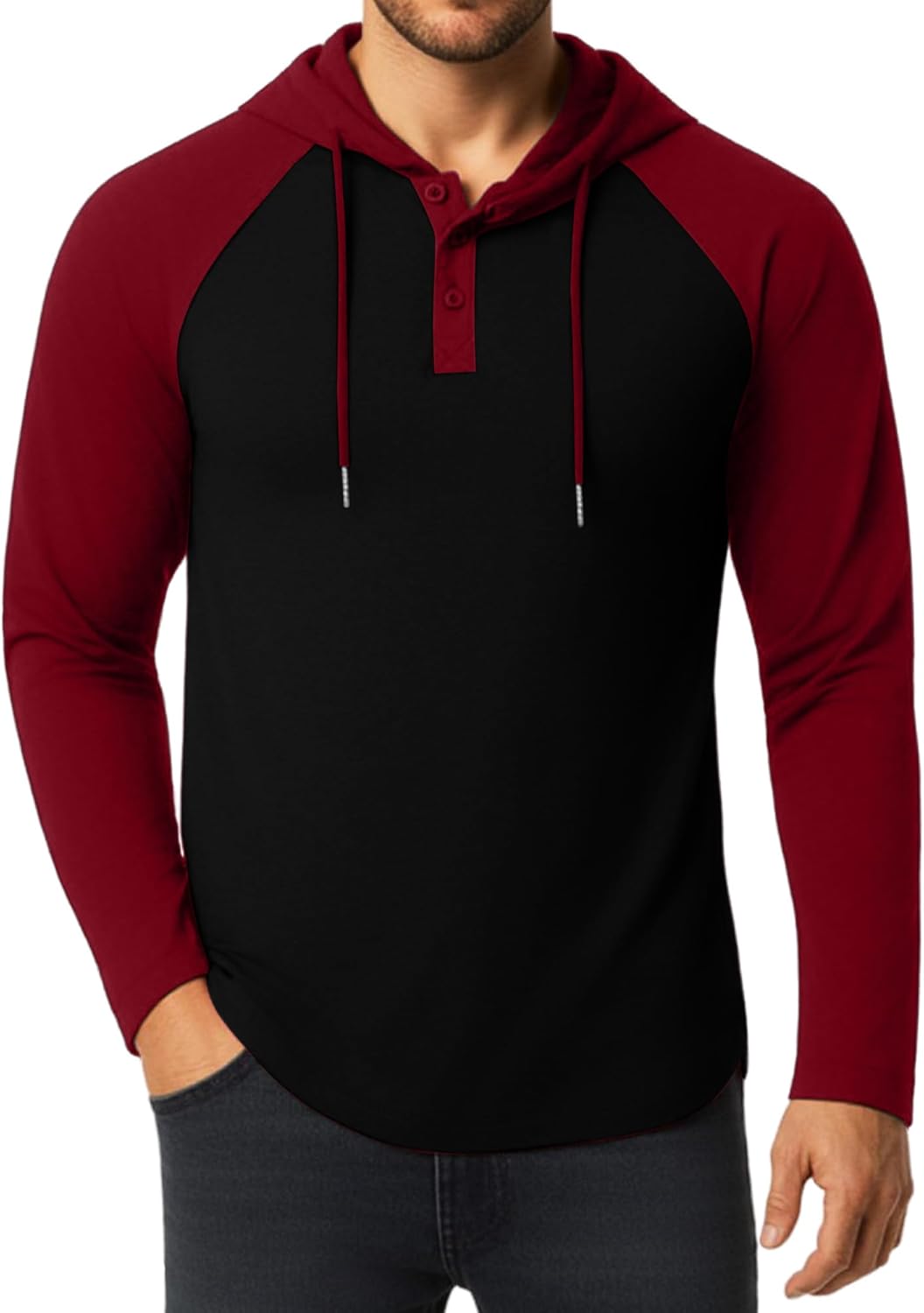 KUYIGO Mens Hoodie Long Sleeve Casual Athletic Workout Fashion Pullover Hooded Contrast Collar Sweatshirt with Drawstring