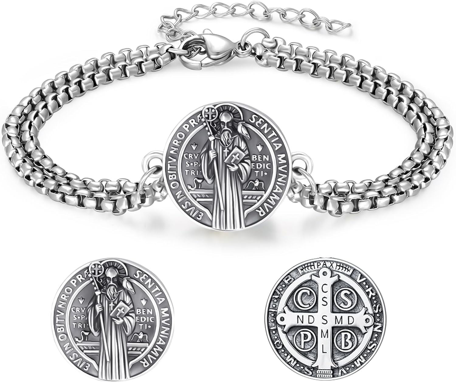 925 Sterling Silver Patron Saint Medal Bracelet Amulet Protection Jewelry Birthday for Men Women with Gifts Box