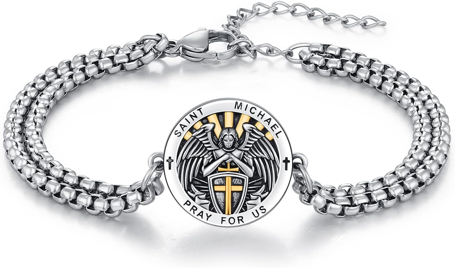 St. Michael Bracelet 925 Sterling Silver, Oxidized Gold Plated Religious Protection Jewelry, Archangel Catholic Christian Gift for Men & Women