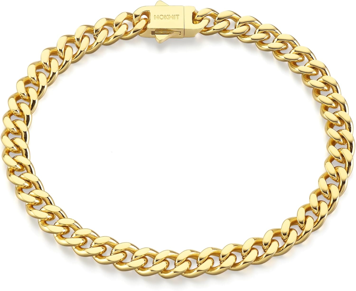 NOKMIT Stainless Steel Cuban Link Bracelet for Men & Women, 5mm/9mm/12mm Width, 7"/7.5"/8"/8.5" Length, Dainty 14K Gold Silver Chunky Curb Chain Bracelets Hip Hop Jewelry, Unisex Gifts