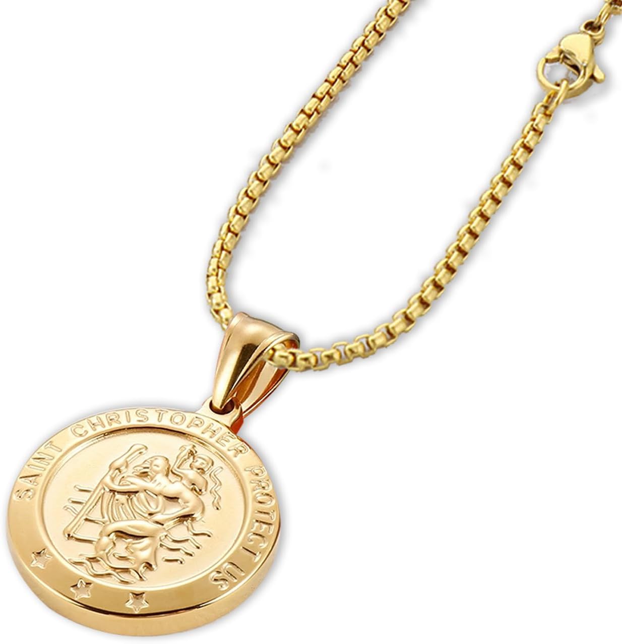 St Christopher Necklace Mens Womens,14k Stainless Steel Saint Christopher Pendant Silver Gold Religious Necklaces Perfect gifts for Family Parent Friend Patron Saint of Travellers