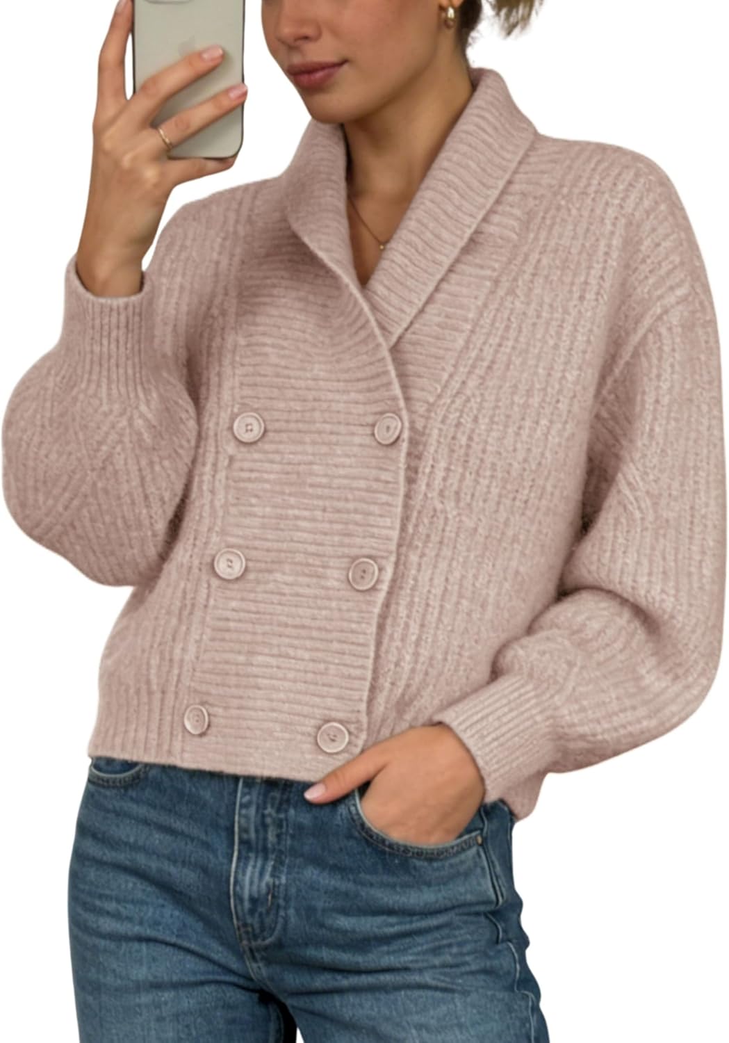 Xiaoxuemeng Womens Knitted Cardigan Sweater Button Down Shawl Collar Cardigan Jackets Chunky Ribbed Knit Sweater Top