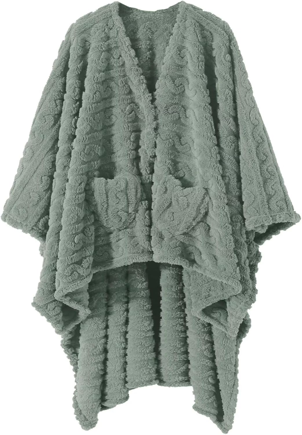 Wearable Blanket Sherpa Fleece Shawl Blanket with Pockets Blanket Poncho Cape for Adults, Cozy Shawl TV Throw Blankets