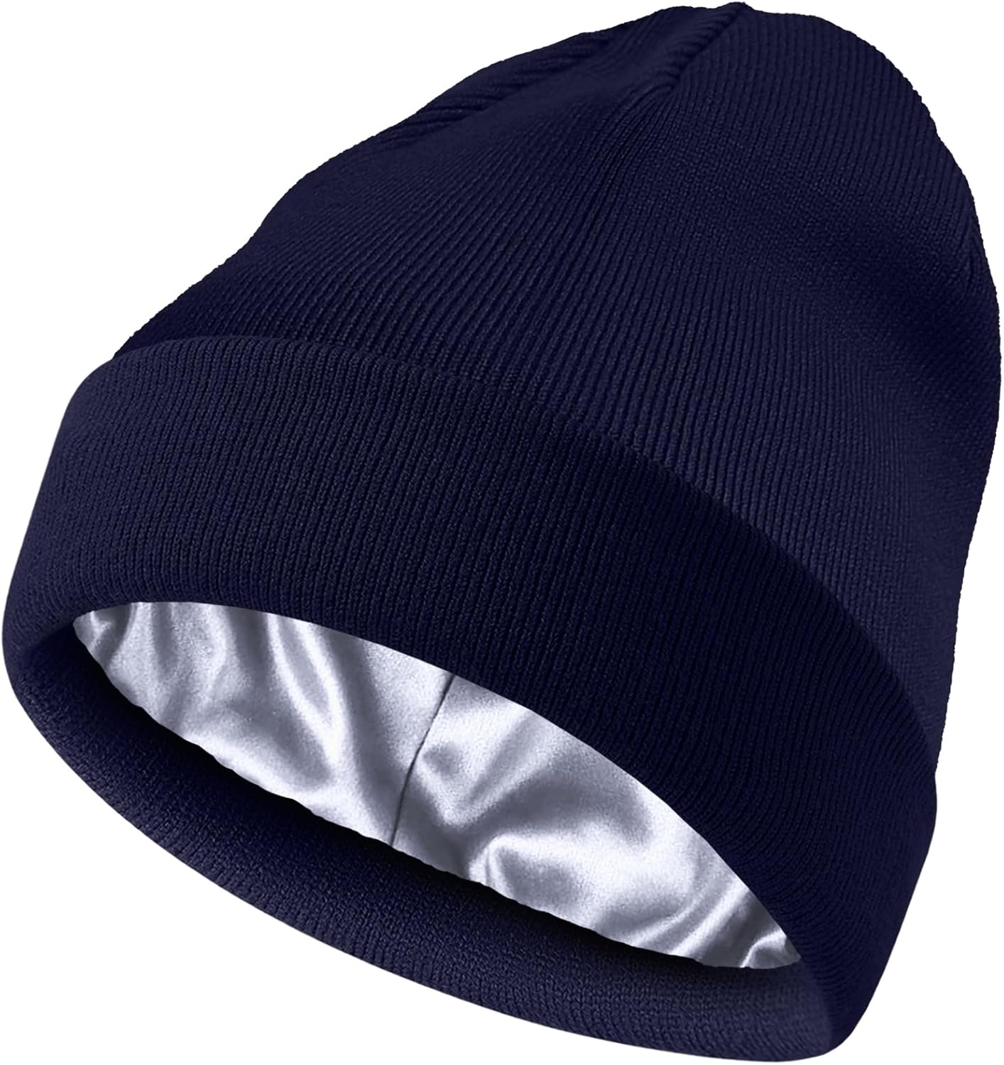 Satin Lined Beanie Hat for Women Men, Wool Knit Cuffed Silk Lining Fisherman Beanies Slouchy Warm Winter Hats Skull Cap