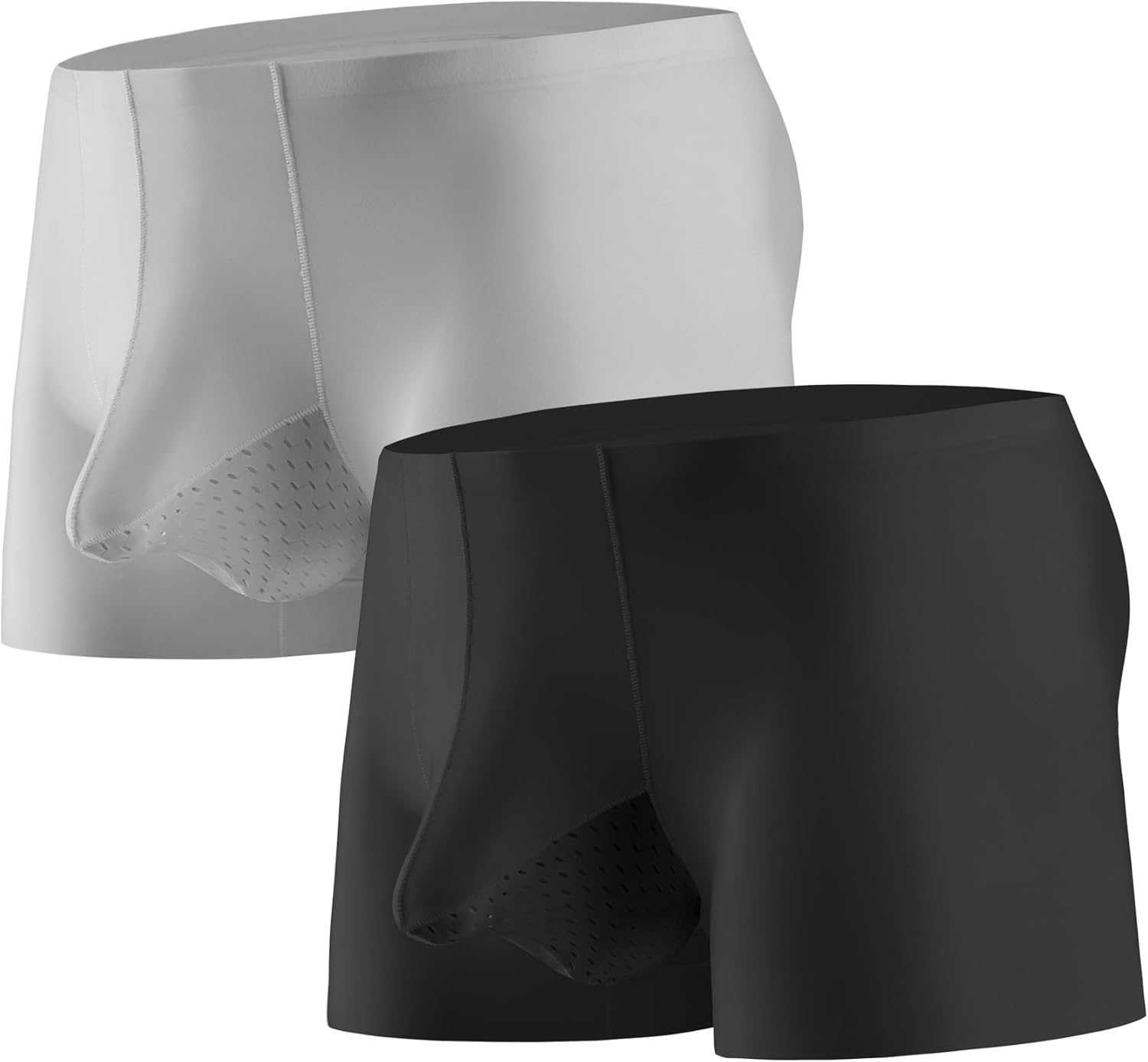 Ouruikia Men's Underwear Silky Smooth Boxer Briefs Breathable Trunks Boxer Briefs Underwear with Separate Pouch