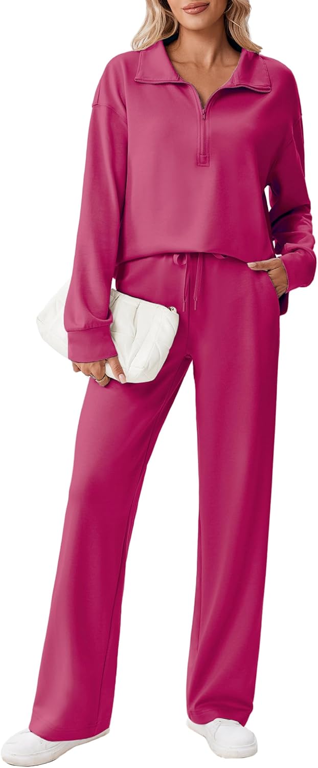 PINSPARK 2 Piece Sets for Women 1/2 Zip Sweatsuit Loose Fit Sweatshirt Straight Leg Pants 2025 Matching Outfit Fall Tracksuit