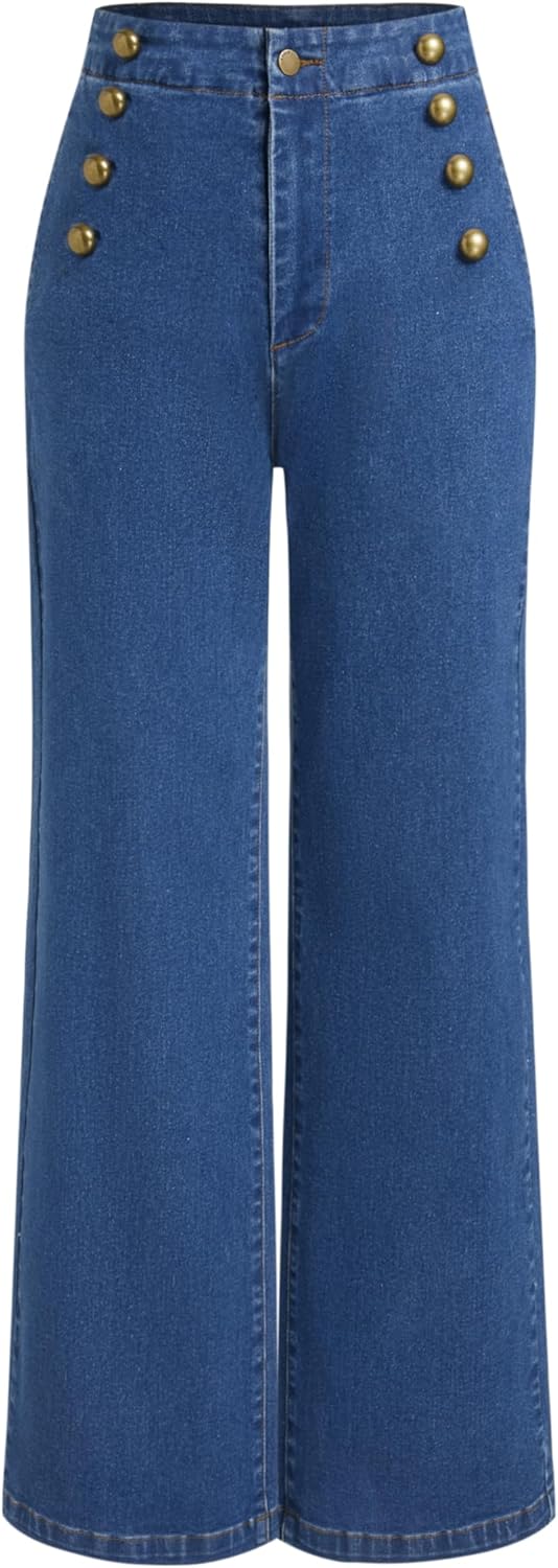 CIDER Womens Wide Leg Straight Leg Jeans High Waist Trendy Fashion Denim Slim Basic Dressy Casual Business Button Pants