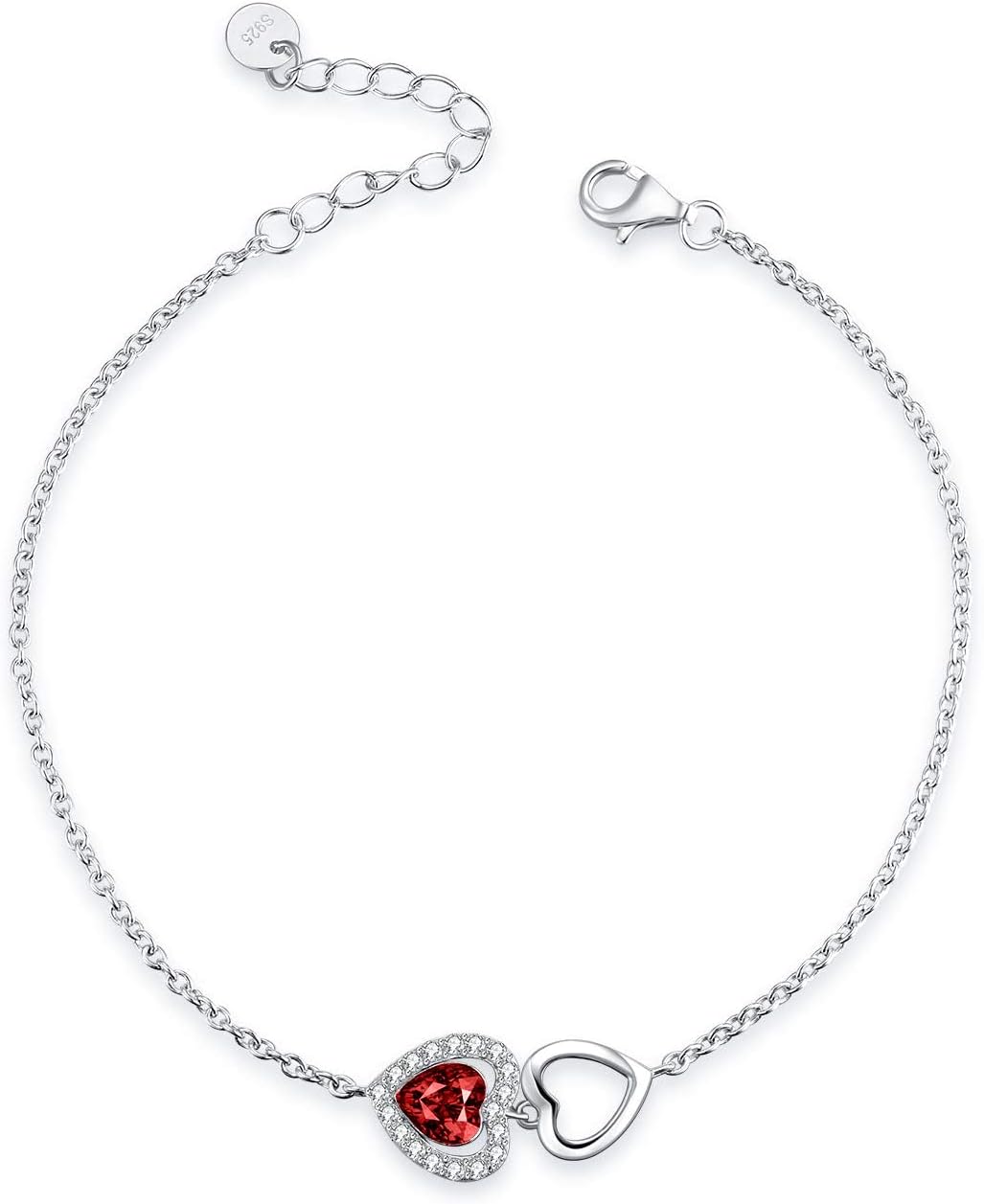 AOBOCO Anniversary Jewelry Gifts for Her, Love Heart Bracelet 925 Sterling Silver Classic Birthstone Adjustable Bracelets for Women Birthday Christmas Jewelry for Women Wife 6-9 inches (Gift Box)