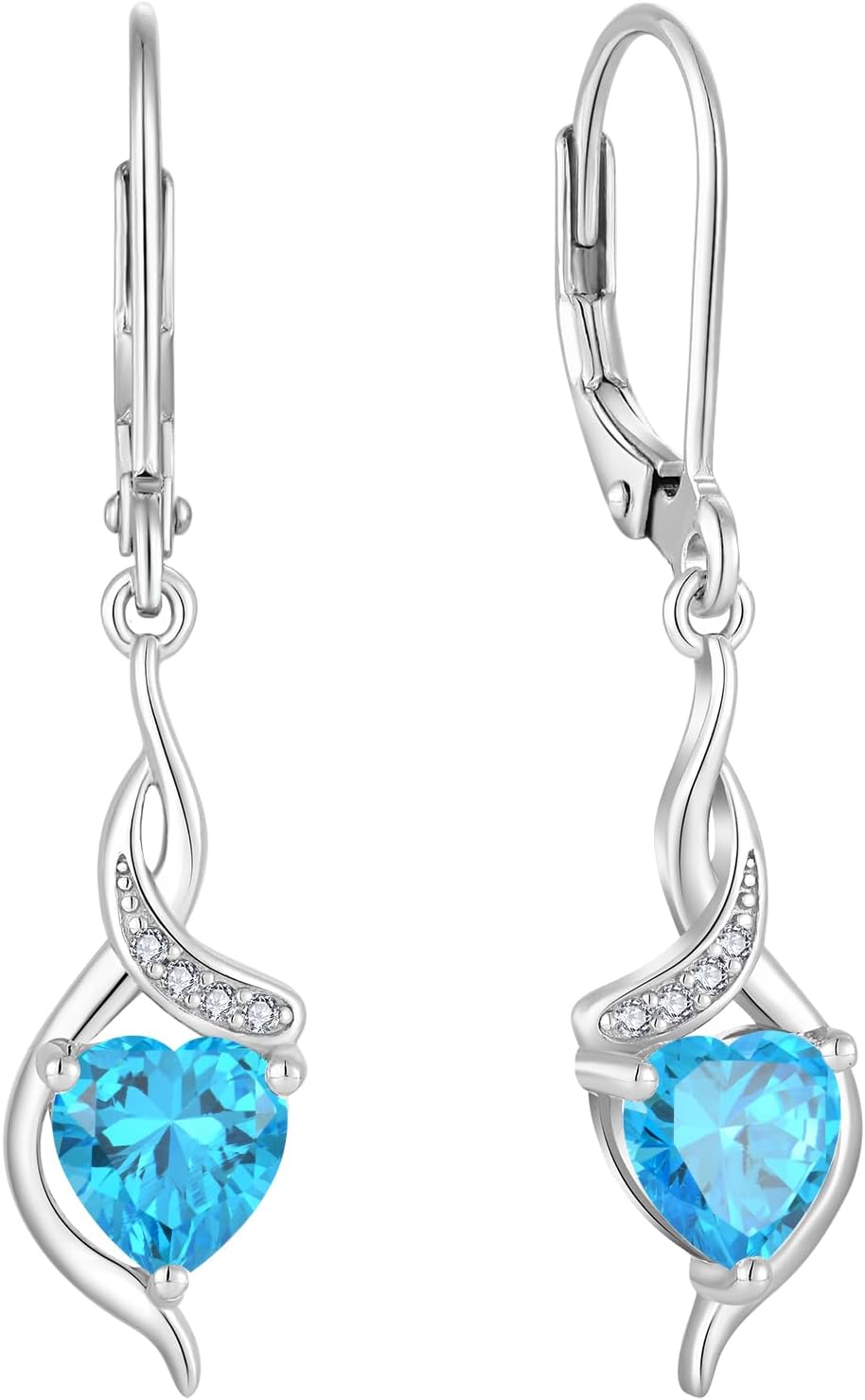 Infinity Dangle Drop Earrings 925 Sterling Silver Love Heart Leverback Earrings Birthstone Jewelry Gifts for Women