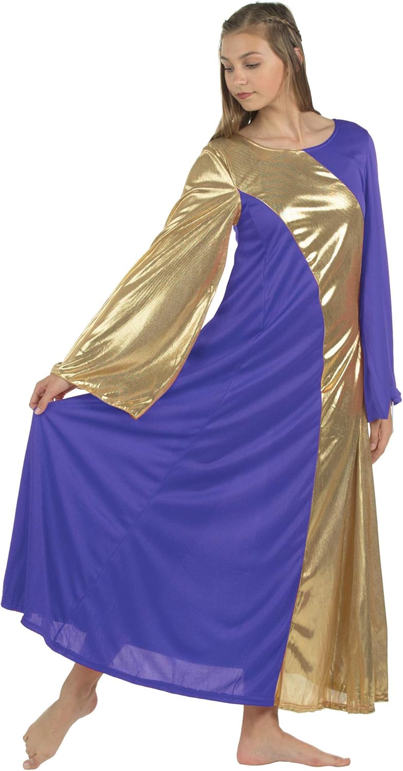 Danzcue Womens Asymmetrical Bell Sleeve Dance Dress
