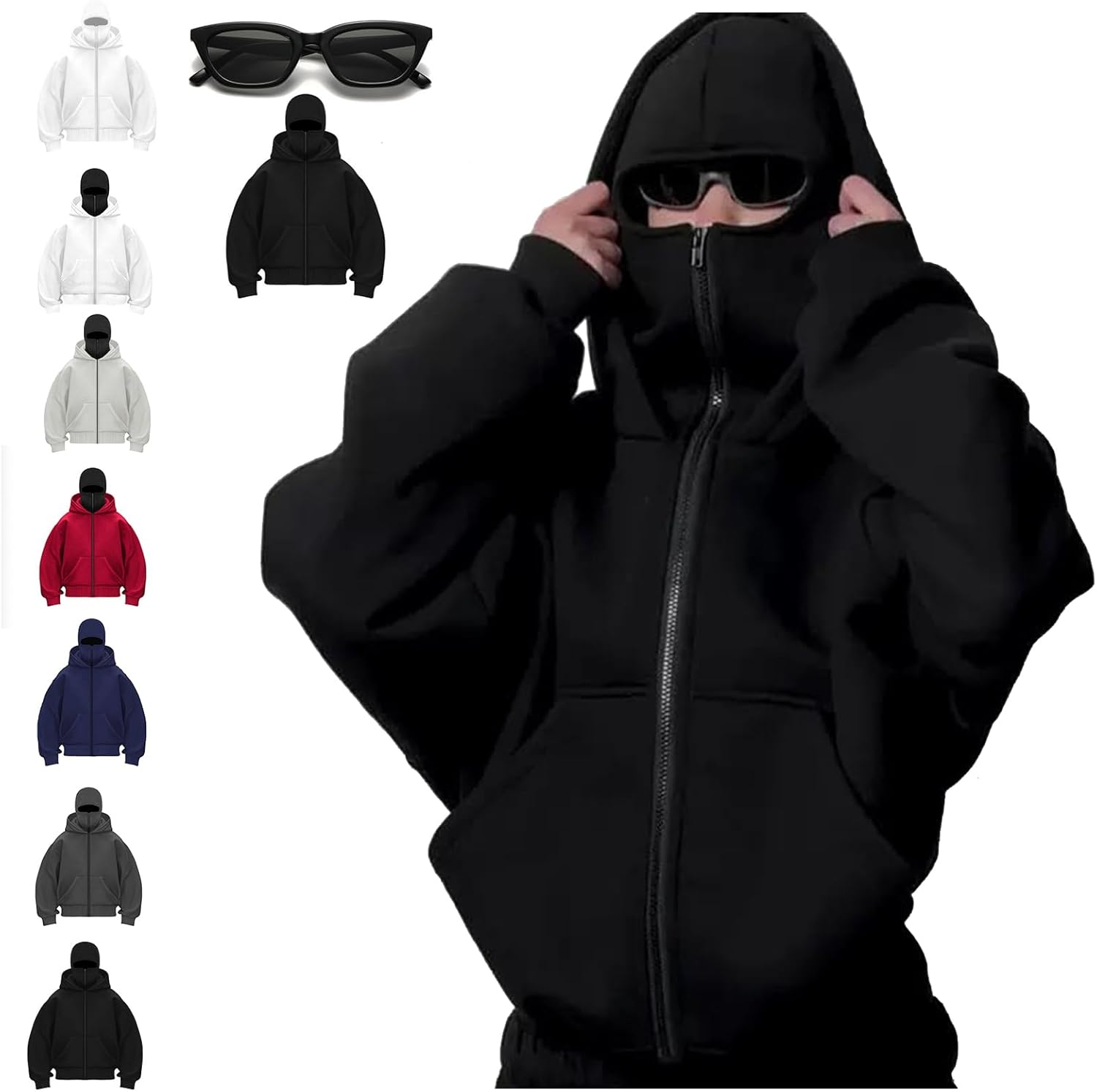 Shiesty Zip Up Hoodie with Mask, Hoodie with Face Mask Built in Balaclava,Ski Elusive Balaclava Hoodies for Men
