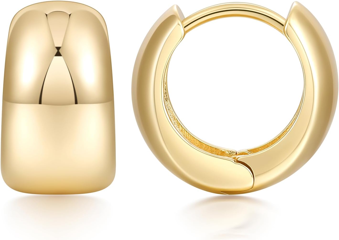 SHINYSO 14K Gold Plated Small Chunky Hoop Earrings for Women Dainty Thick Lightweight hypoallergenic Earring