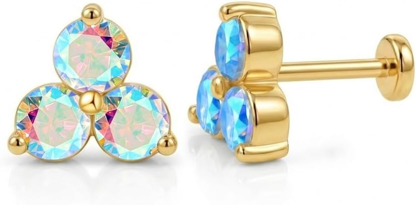 FANSING Tiny Flower Birthstone Earring Cubic Zirconia Flat Back Earrings for Women Small Stud Earrings for Cartilage Helix
