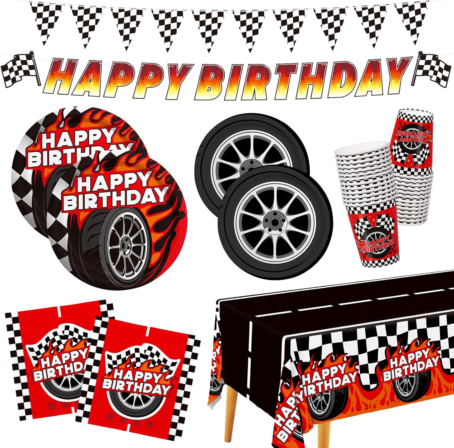 - 2. Racing Birthday Party Elegance: Transform your space with our elegantly designed party supplies. The checkered pattern on our plates, napkins, banners, and tablecloths seamlessly integrates into your car birthday decorations, adding a sophisticated touch to your racing theme party. These designs are a nod to classic race car birthday party decorations, ensuring your event looks both refined and exhilarating.