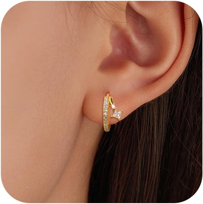 925 Sterling Silver Dainty Cute Hoop Earrings for Women Trendy 14k Gold Plated Small Huggie Cartilage CZ Earring to Daughter Mom Hypoallergenic Cubic Zirconia Earrings Valentine's Day Jewelry Gifts