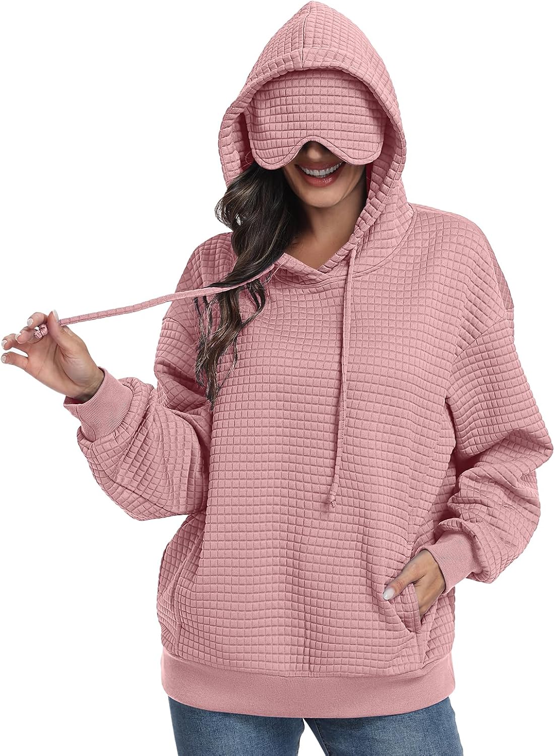 SeSe Code Hoodie With Eye Mask Waffle Hooded Sweatshirts Womens Travel Airplane Sleep Hoodies Mens Oversized Pullover