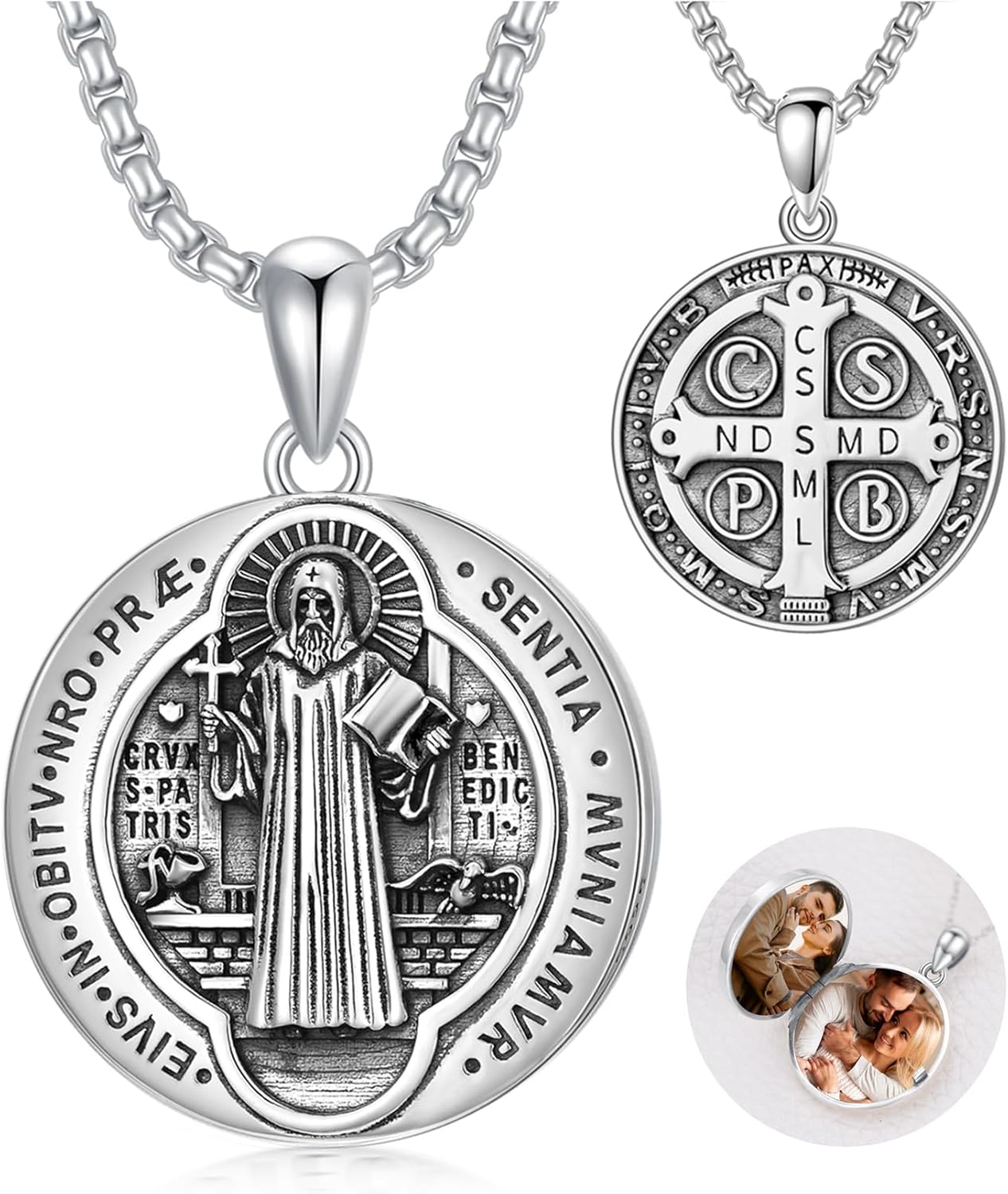 Seiyang 925 Sterling Silver Saint Locket Necklace Personalized Photo Pendant for Men Women (with Gift Box)