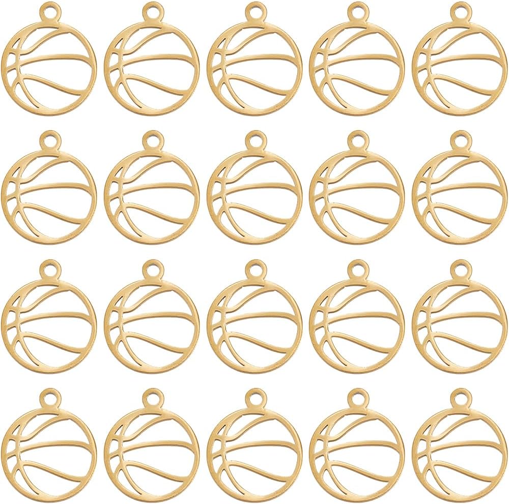 SUNNYCLUE 1 Box 20Pcs Gold Basketball Charm Stainless Steel Sports Charms Hollow Minimalist Basketball Pendants for Jewelry Making Supplies Findings DIY Craft Necklace Bracelets Basketball Players