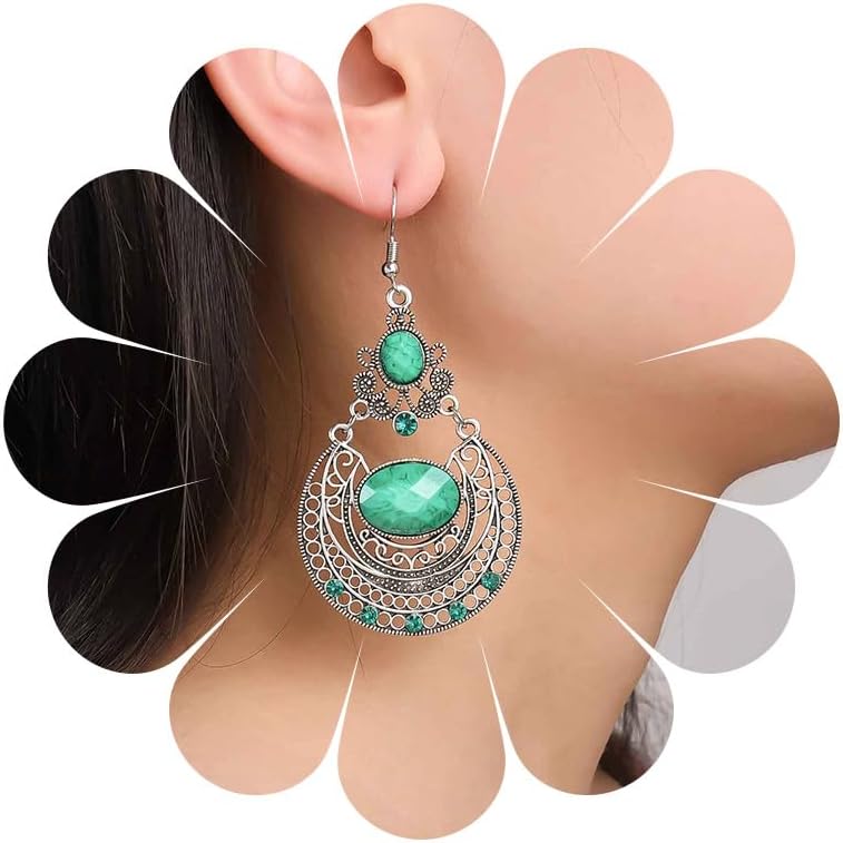 Andelaisi Boho Filigree Teardrop Drop Earrings Vintage Tribal Geometric Hook Earrings Silver Ruby Waterdrop Dangle Earrings Ethnic Gypsy Pattern Chandelier Earrings Jewelry for Women