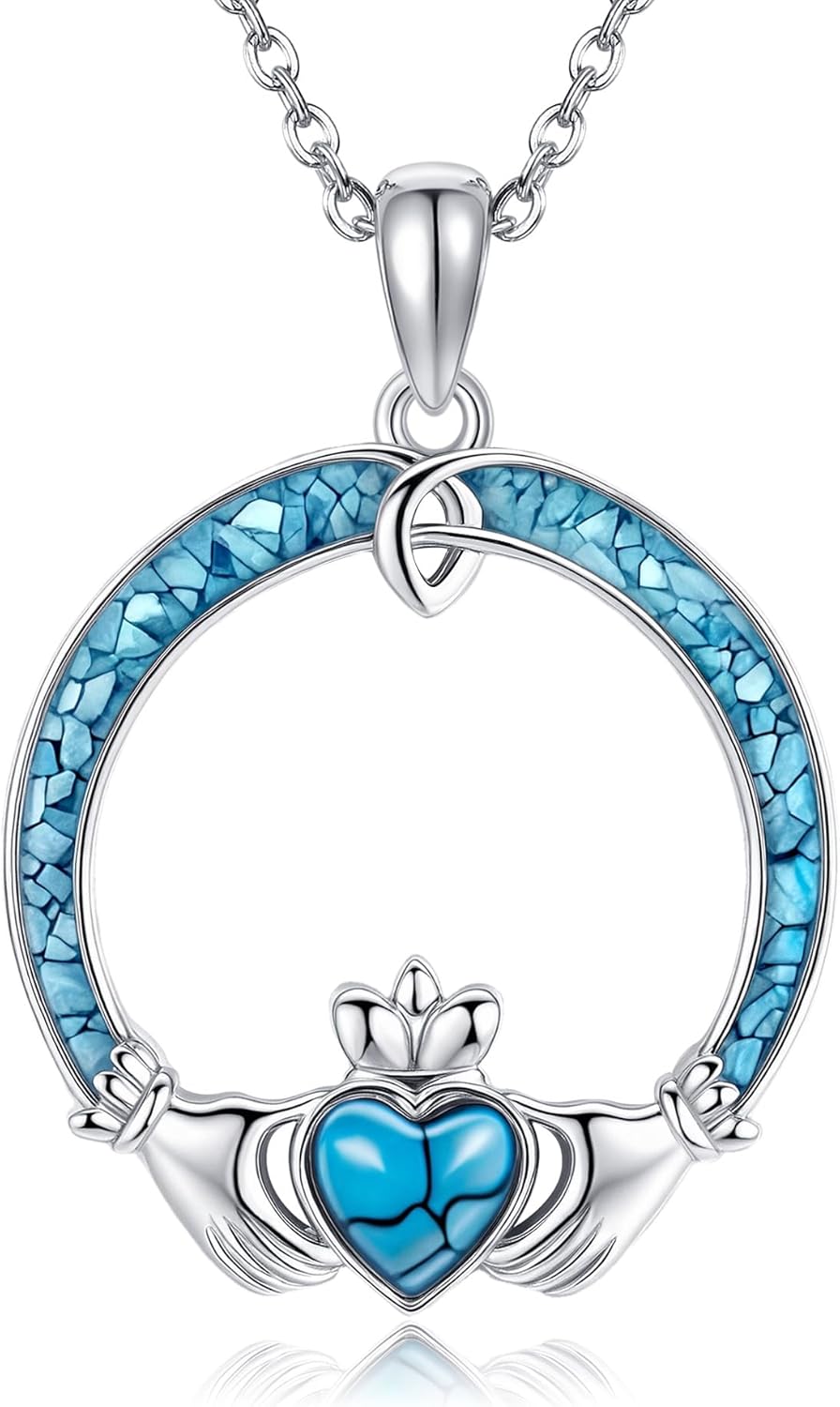 Claddagh Necklace 925 Sterling Silver Turquoise Claddagh Pendant Irish Jewelry Gifts for Women