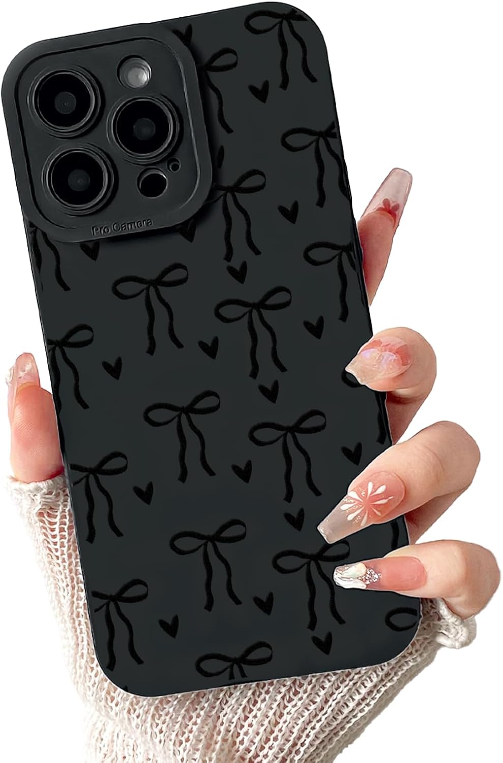 Lovmooful Compatible for iPhone 15 Pro Max Case Cute Cool Ribbon Bowknot Heart Design for Girls Women Soft TPU Shockproof Protective Girly for iPhone 15 Pro Max Case-Black