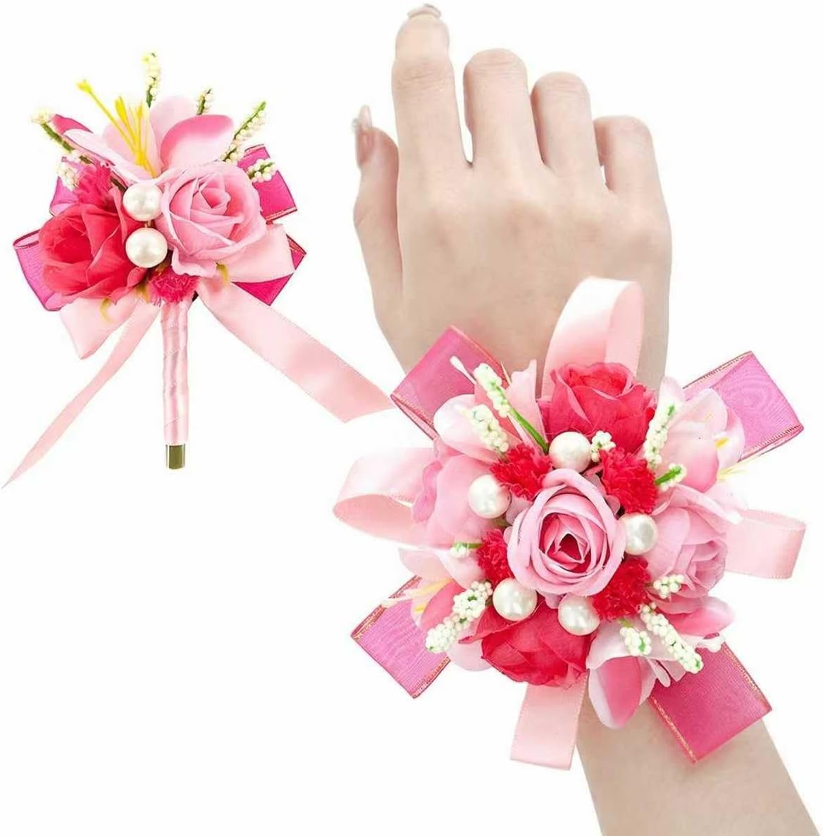 - Warm reminder: These prom flower wrist corsage and boutonniere for men sets are 100% handcrafted , please understand that the size may vary slightly. And there may also be slight color differences between different display devices and different dye batches.