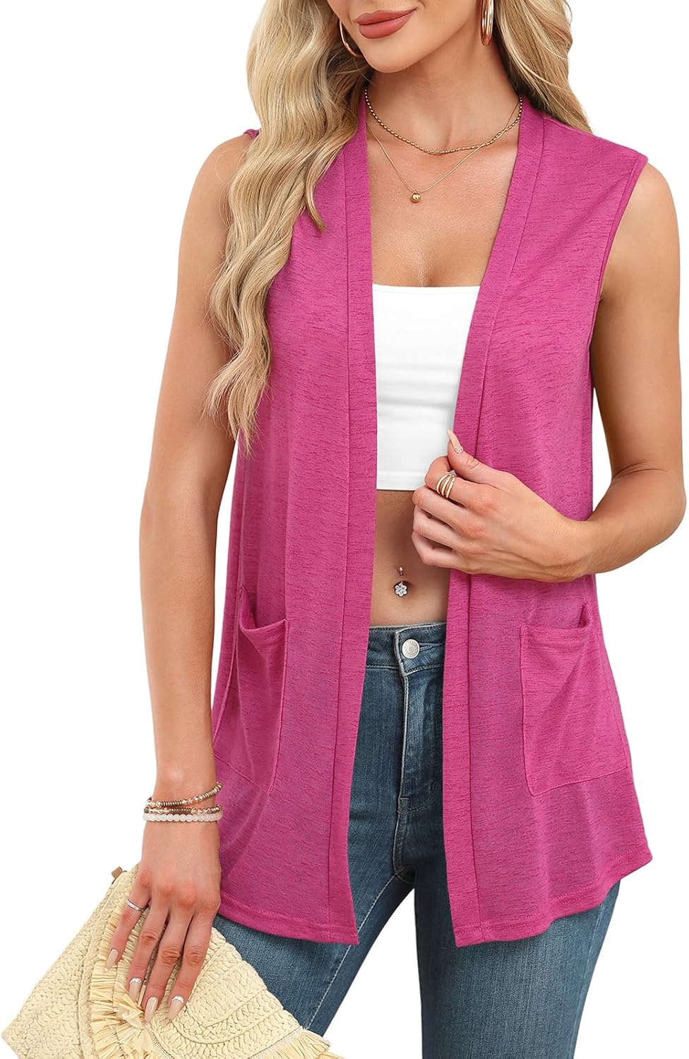 Summer Vest for Women Lightweight Fashion Casual Soft Knit Sleeveless Cardigan Curved Hem with Cozy Pockets (S-3XL)