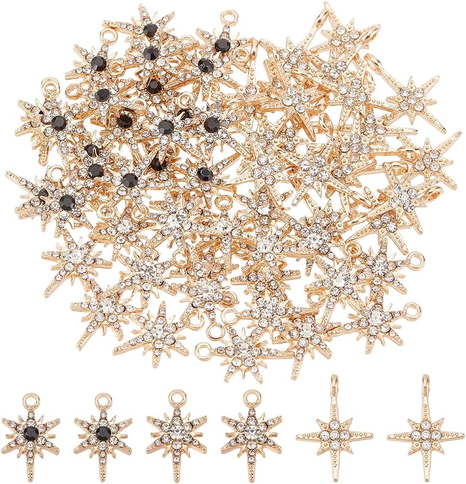 PH PandaHall 60pcs Star Charms North Star Cubic Zironia Pandent 3 Style Star Pendant 8 Pointed Star Charm Rhinestone Pendant for Making Bracelets Necklace Jewelry