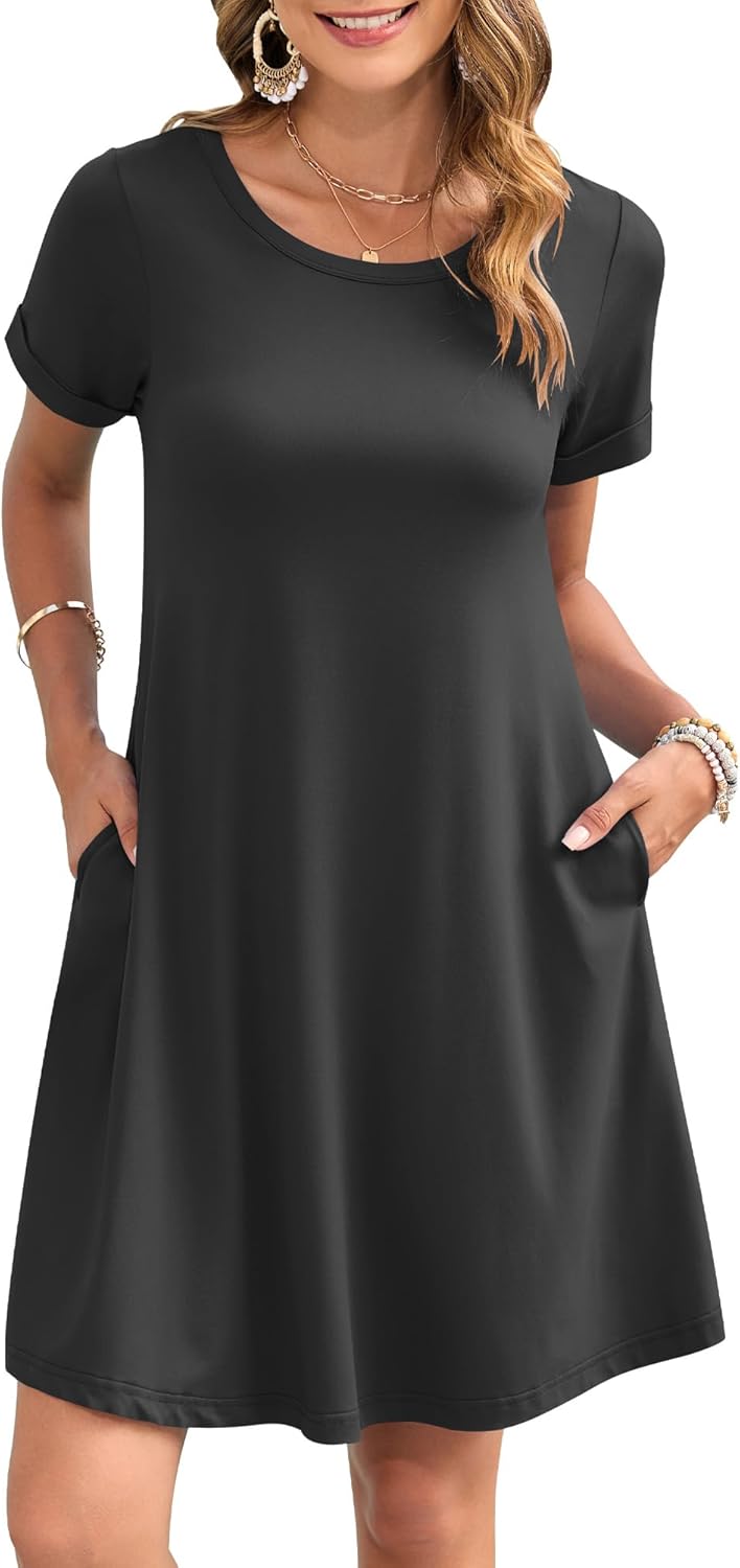 AUSELILY Women's Summer Casual Dresses 2026 Short Sleeve Swing Beach Floral T-Shirt Dress with Pockets
