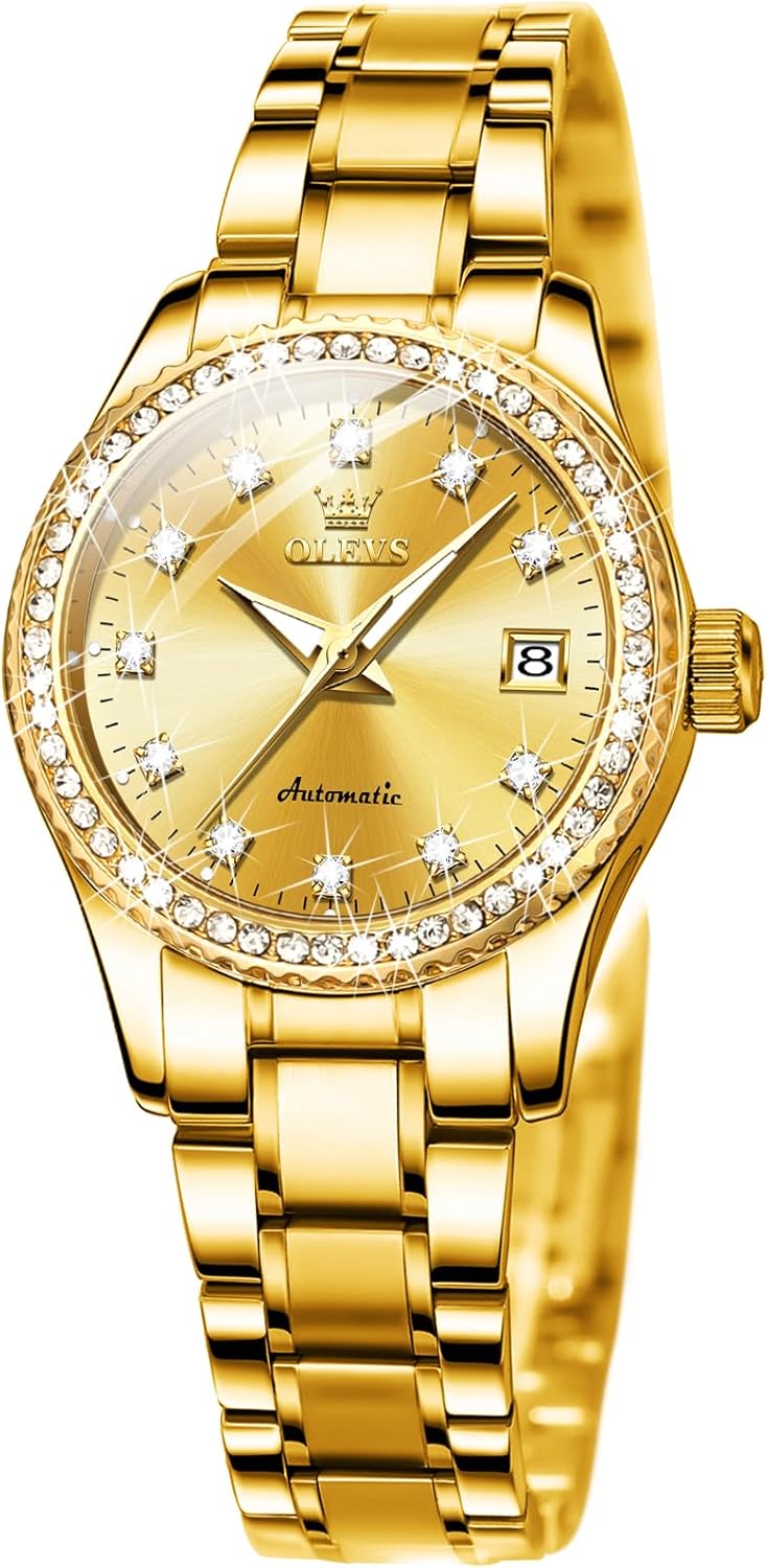 OLEVS Womens Automatic Watch Gold Luxury Diamond Self Winding Ladies Wrist Watches Waterproof Luminous Date