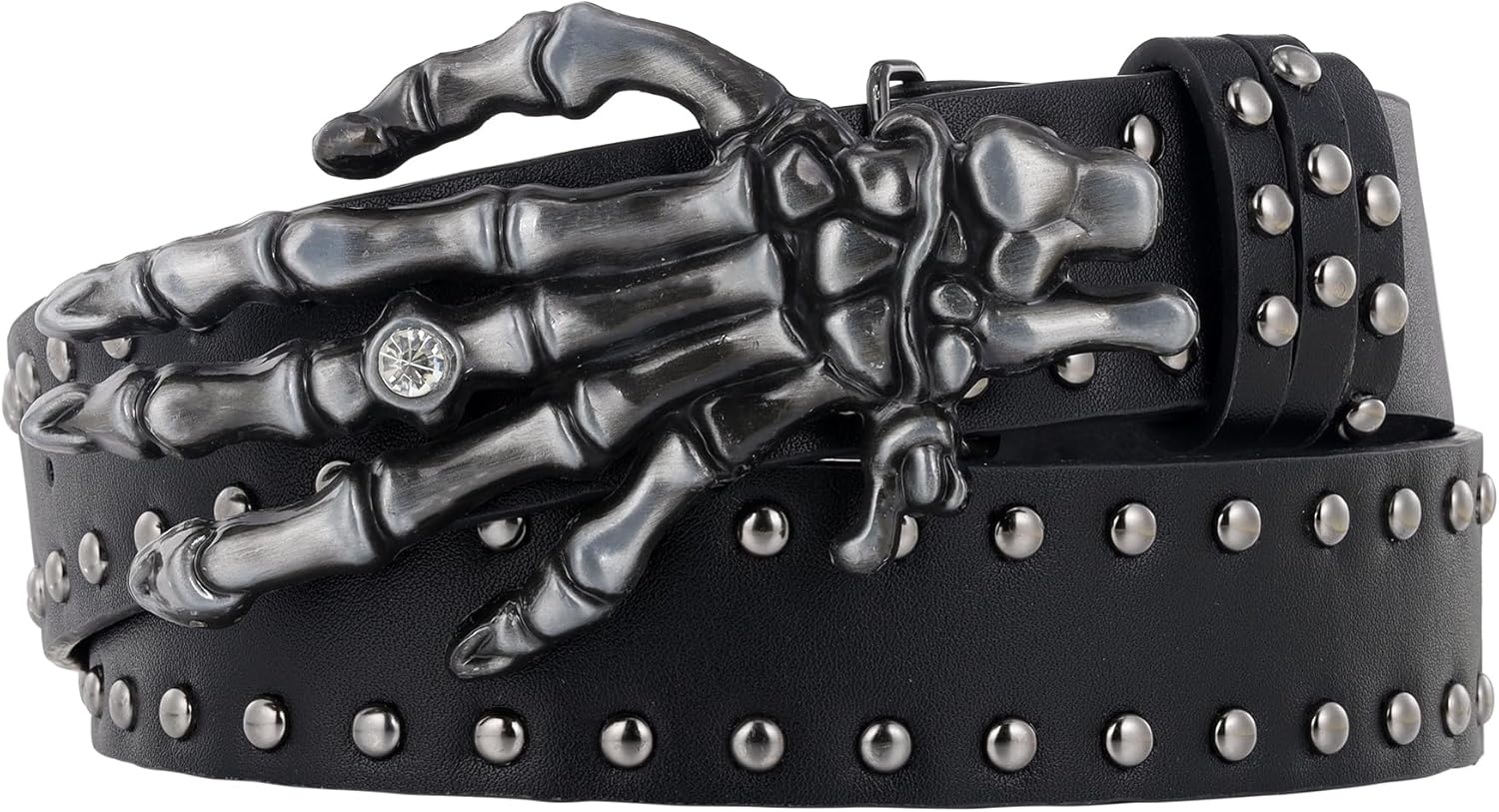 MILAKOO Skull Head Leather Buckle Belt Gothic Punk Waist Band Skeleton Metal Buckle for Jeans Pants Biker Belts Outfits