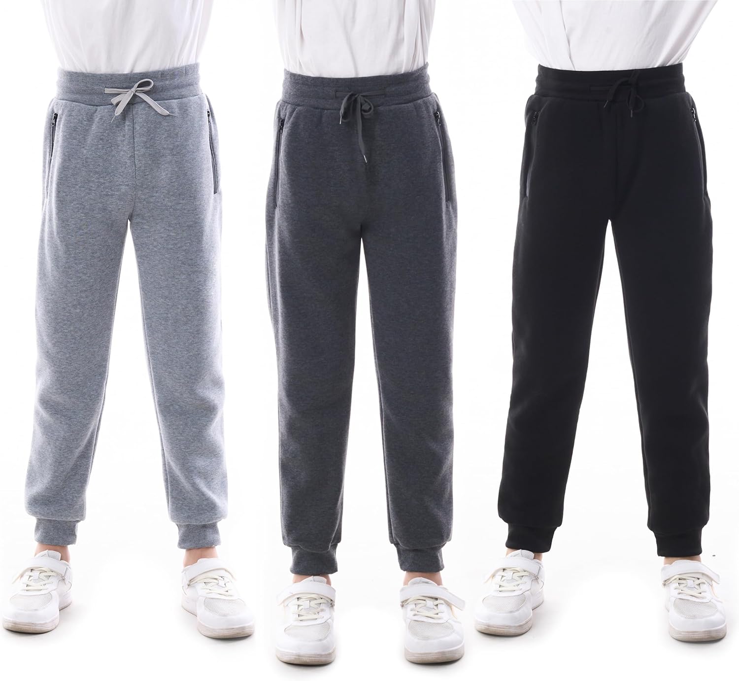 Boys Athletic Sweatpants, 3 Pack Kids Fleece Casual Jogger Pants with Zipper Pockets Size 4-20