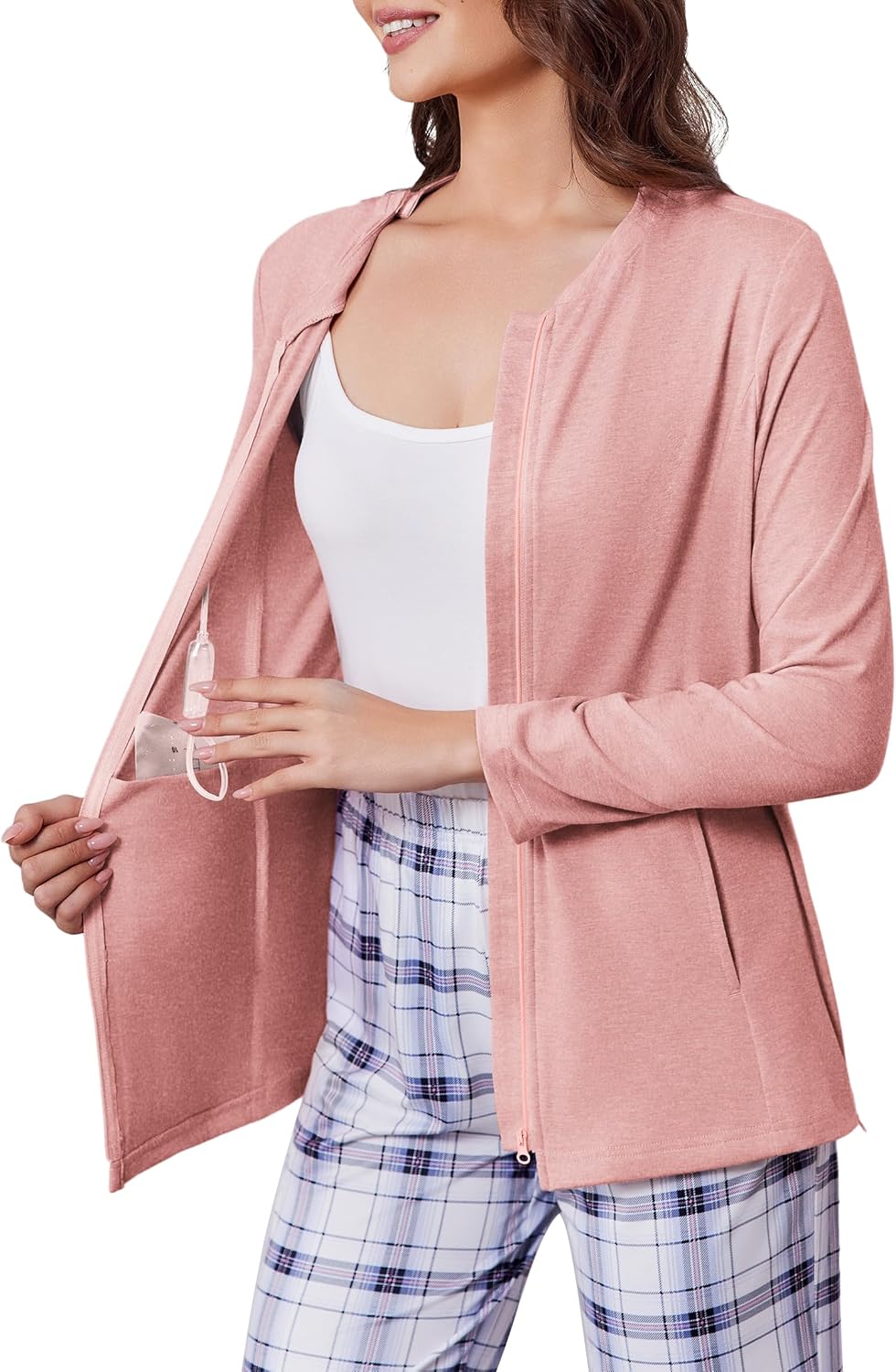 Deyeek Mastectomy Shirts with Drain Pockets Post Shoulder Surgery Tops for Women Chemo Port Long Sleeve with Zippers
