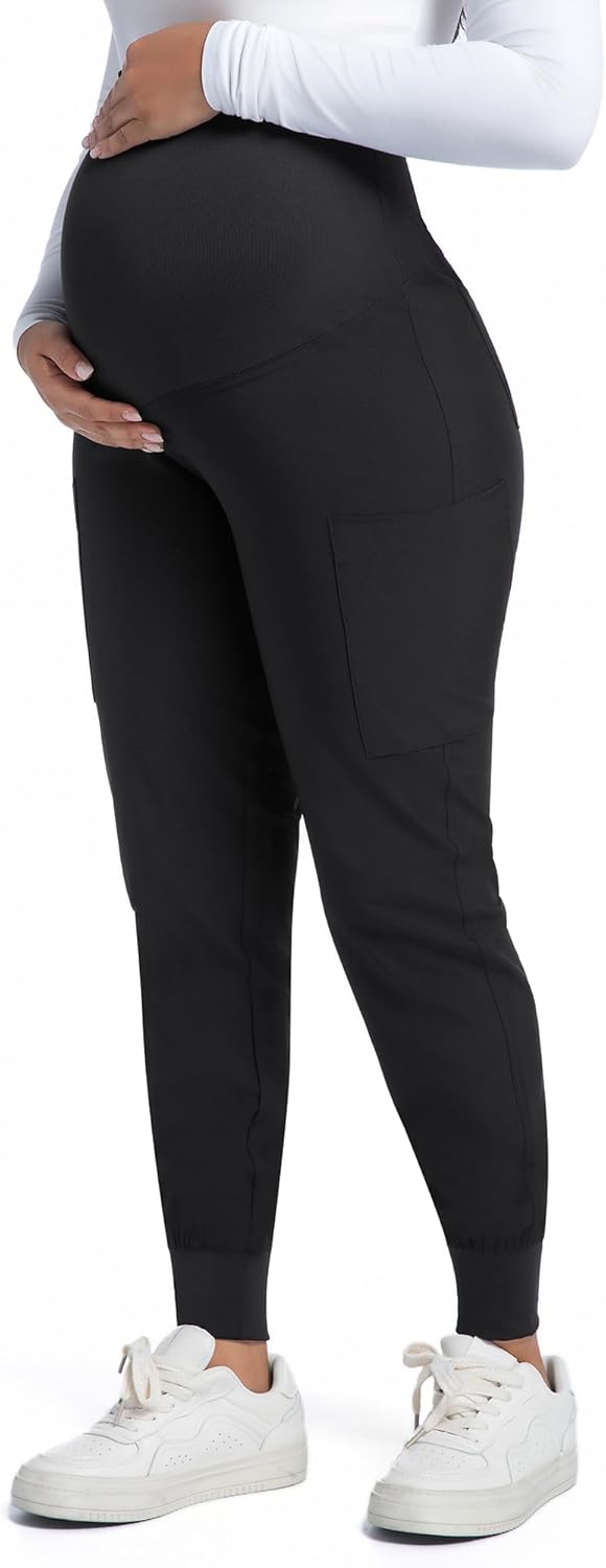 COZYFIT Maternity Scrub Pants - Pregnancy Jogger Pants for Women Workwear with Stretch Belly Panel, 4 Pockets