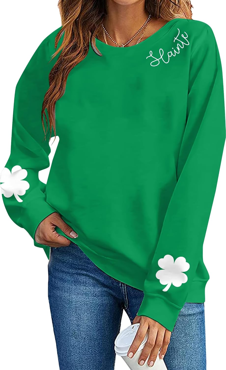 LOTUCY Slainte St. Patrick's Day Sweatshirt Women Irish Shamrock Long Sleeve Shirt Ireland Clover Crewneck Pullover Tops