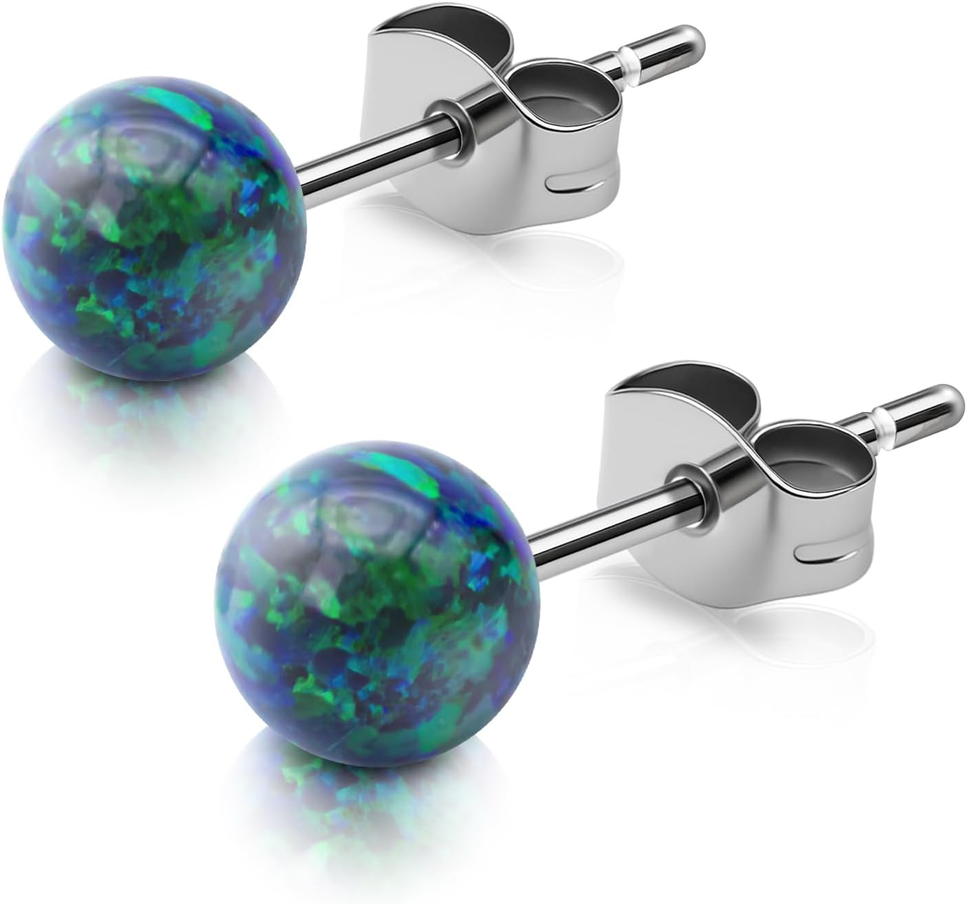 XUU Titanium Opal Stud Earrings,Hypoallergenic 20G Earrings for Sensitive Ears, Multi-Color Options Available,4mm/5mm Stud Jewelry,1 Pair