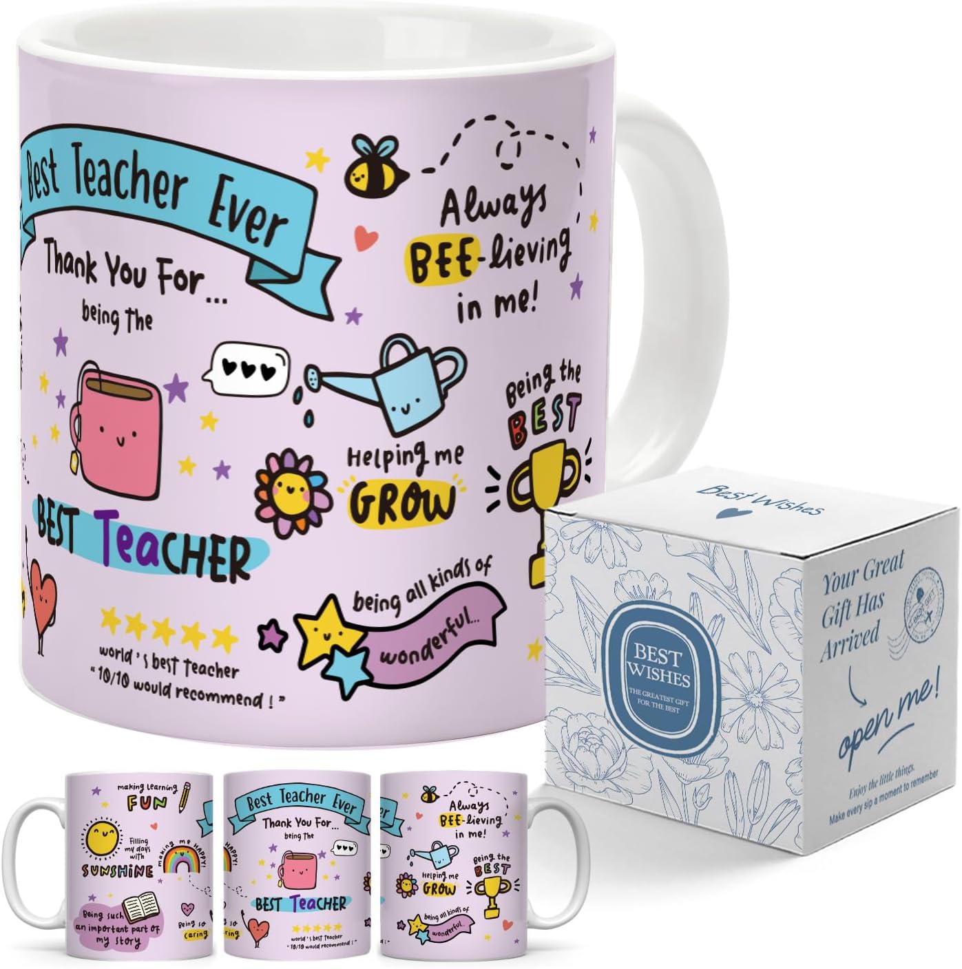 - A thank-you present for my teacher: a mug printed with charming illustrations and sincere messages, filled with appreciation for the teacher who supported me throughout my growth. I hope that whenever she uses it, she recalls the playful student who thrived under her caring guidance.
