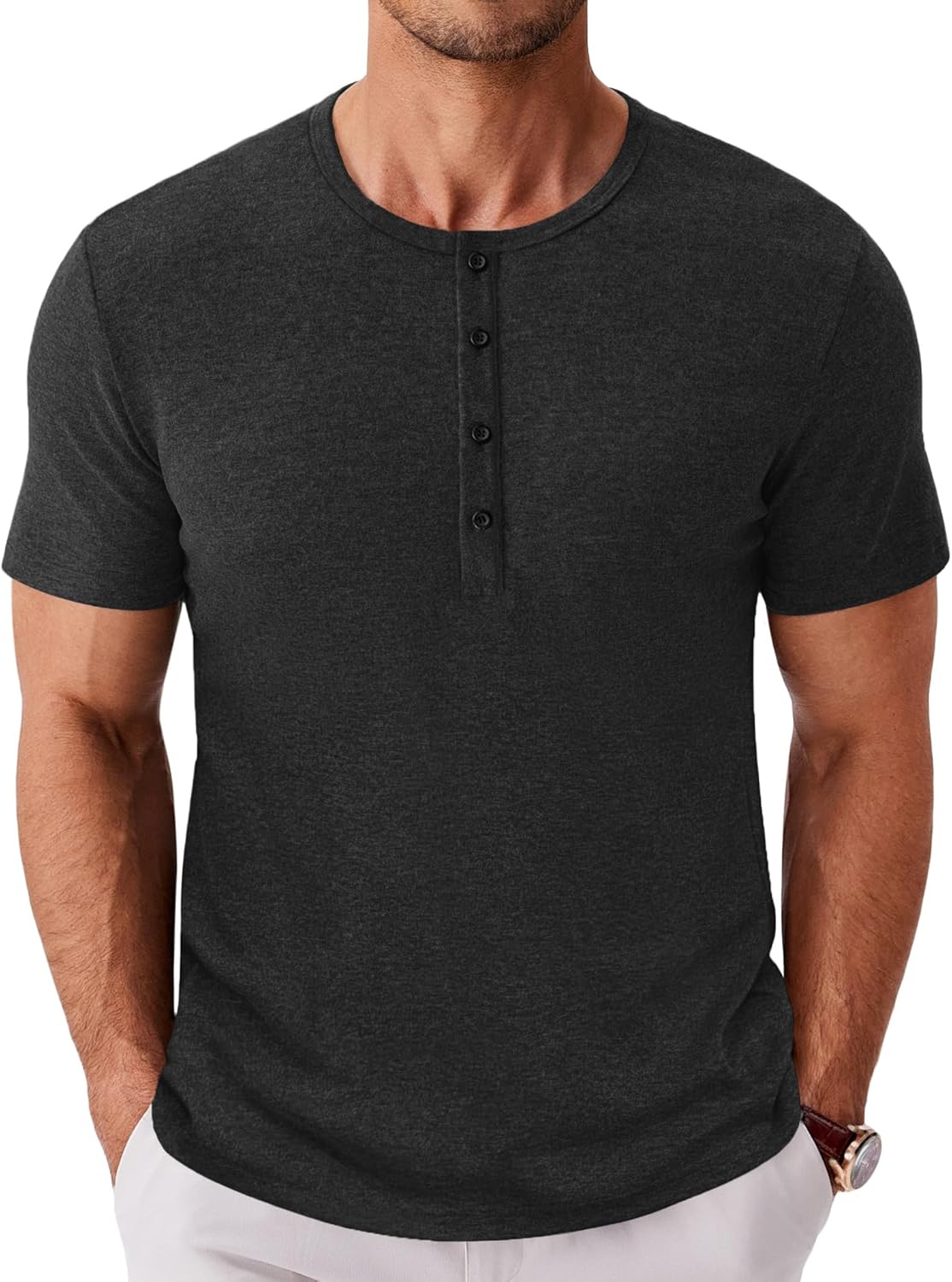 COOFANDY Men's Henley Shirts Short Sleeve Fashion Casual T-Shirts Summer Button Basic Tee