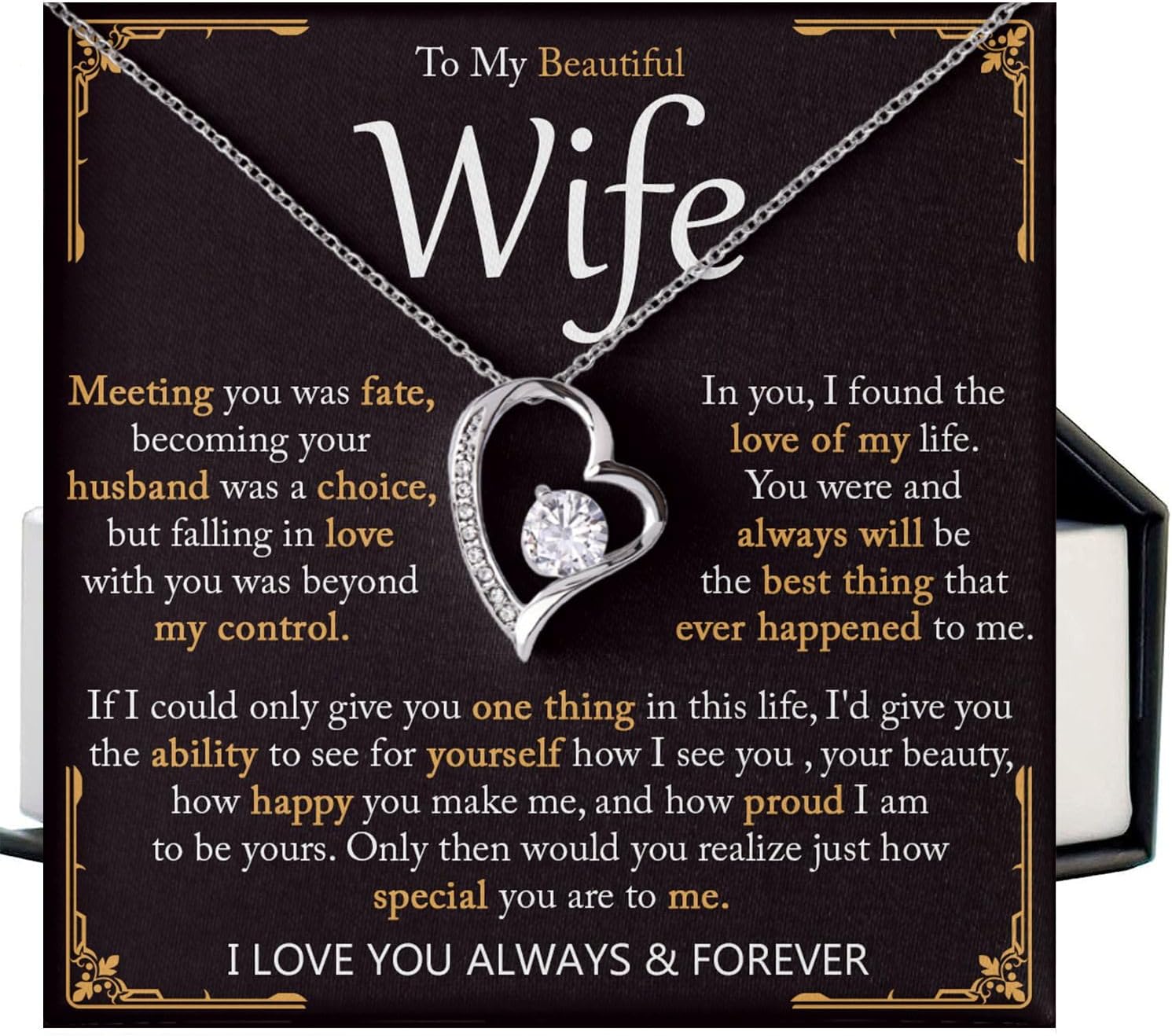 To My Wife Necklace from Husband, Romantic Forever Love Heart Jewelry with Message Card, Anniversary, Valentine’s Day, Christmas, Birthday Gift for Wife