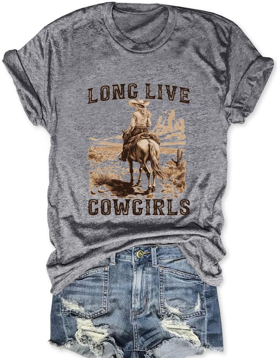 Savarana Western Cowgirls Shirts Women Vintage Graphic Tee Tops Funny Letter Print Country Music Tshirt