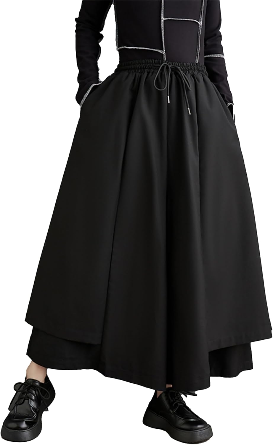 ellazhu Women's Oversized Irregular Drop Crotch Wide Leg Hakama Drawstring Harem Pants GZ163
