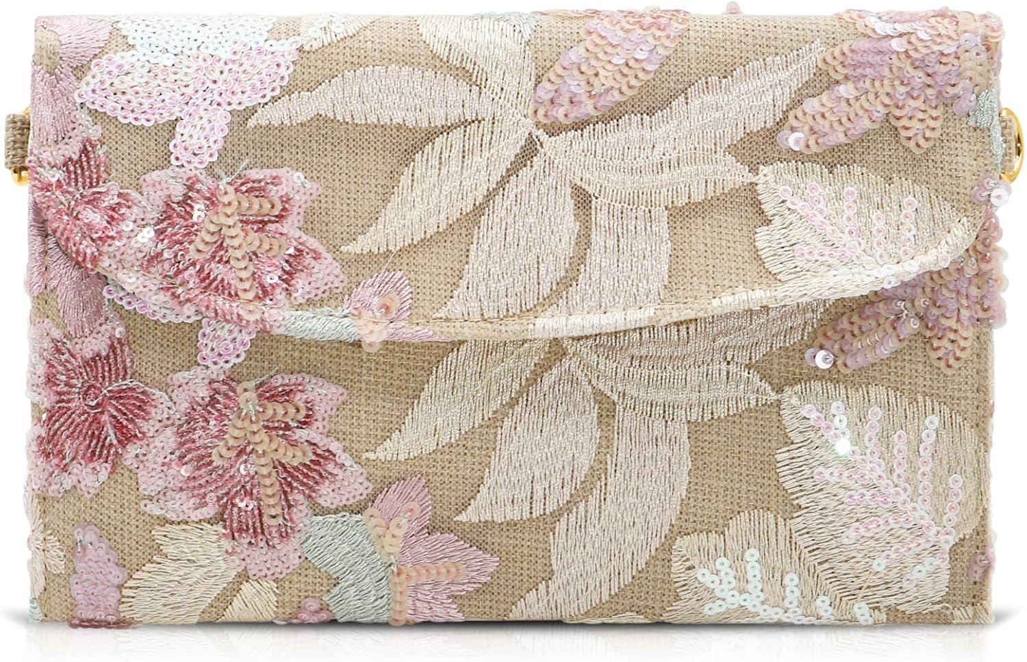 Envelope Package, Clutch Purses for Women, Sequin Embroidered Flowers Straw Bag, Bohemian Handmade Handbags, Beach Bag for Vacation, Travel, Banquet